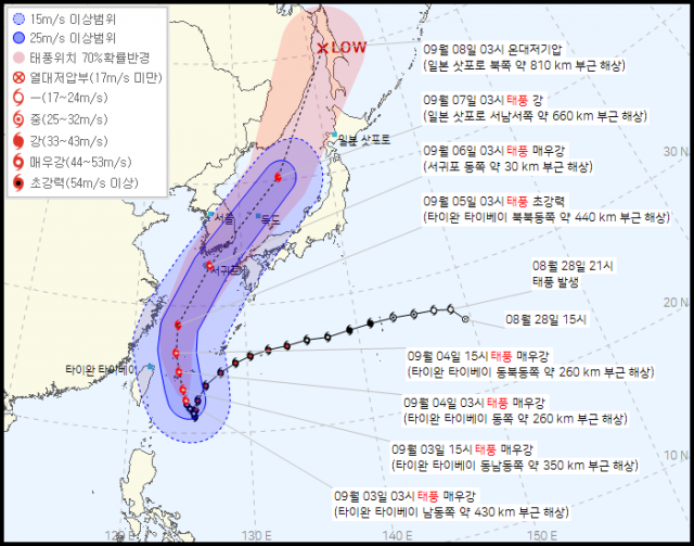 올해 첫 매우 강 태풍 힌남노 대한해협 지날 가능성 동아사이언스
